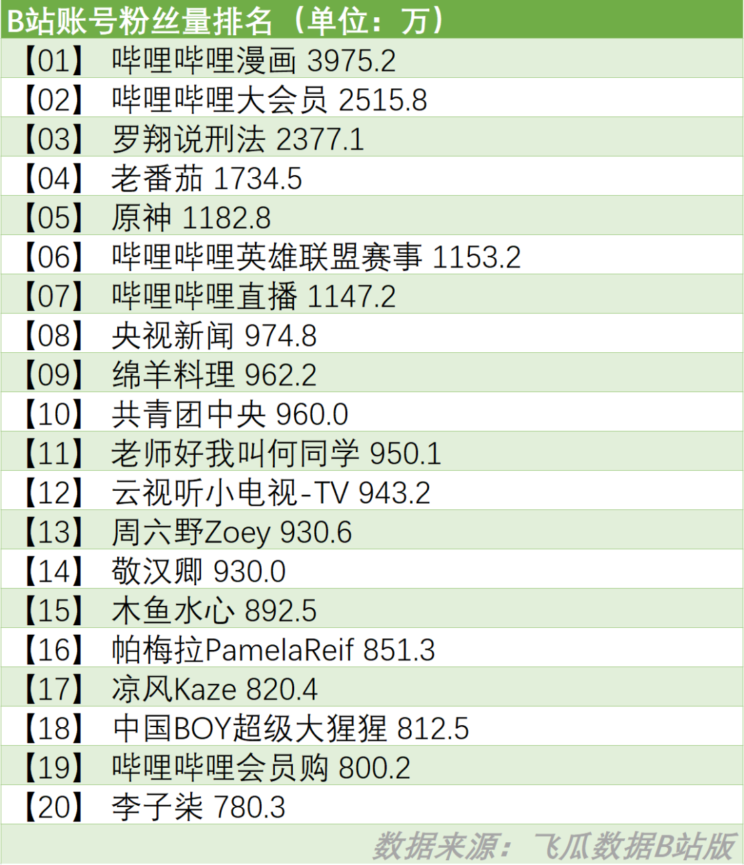在幾大社區(qū)當中,B站的領地意識最為強烈,明星的入駐也需要首先適應up主的身份。根據(jù)2022年6月的B站粉絲量排名統(tǒng)計,B站粉絲量前20的up主,沒有一個是明星,他們大多數(shù)仍然是興趣愛好創(chuàng)作而產(chǎn)生影響力的青年創(chuàng)作者,可見B站近些年的一些軌跡。