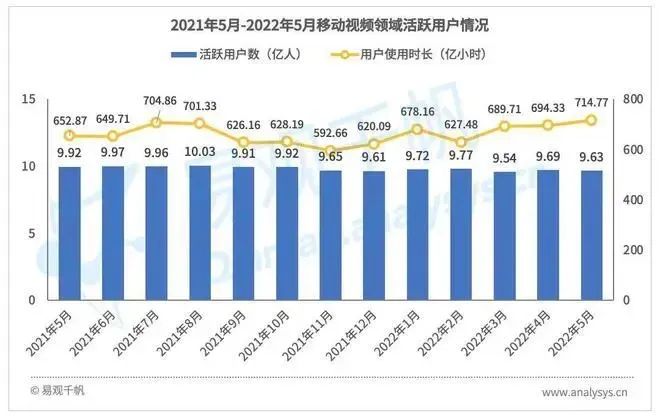 5月,移動視頻活躍用戶數(shù)達到9.63億人,用戶使用時長實現(xiàn)三個月持續(xù)增長,達到714.77億小時,成為近一年內(nèi)最高值,同比增長10%。
