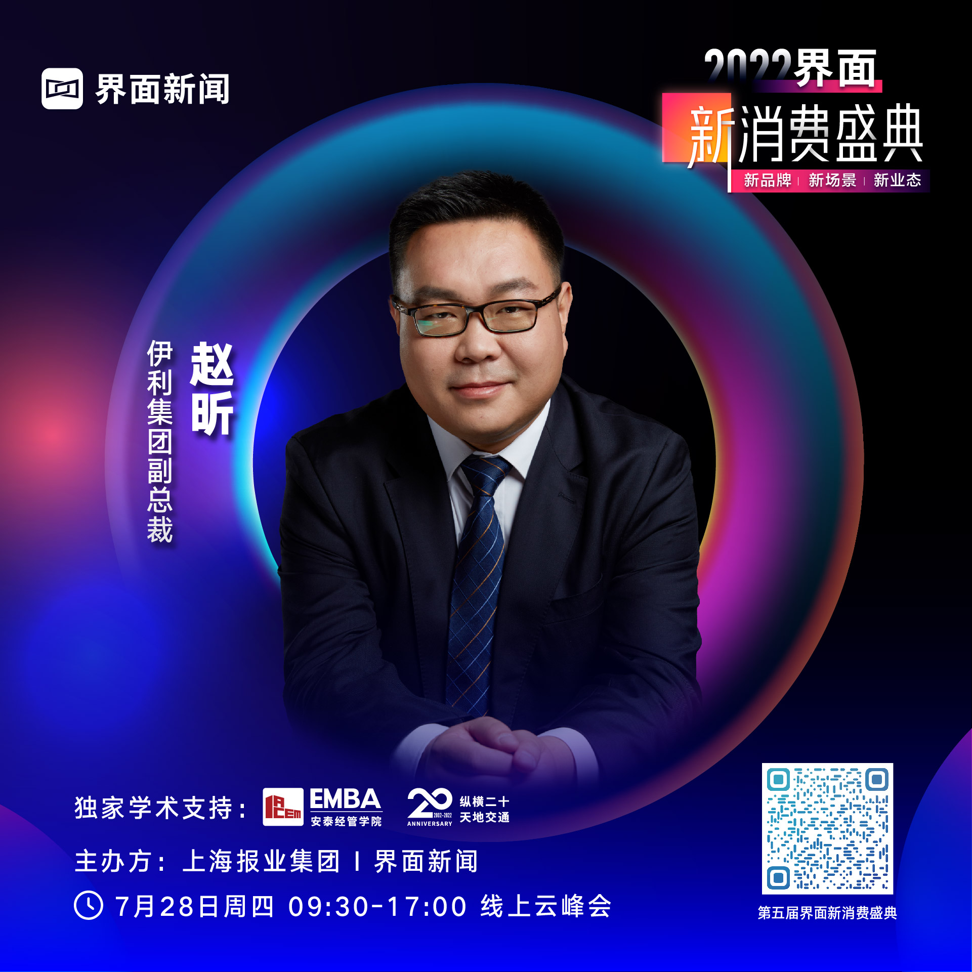 伊利集團(tuán)副總裁趙昕確認(rèn)將出席7月28日在線上舉辦的第五屆【界面新消費(fèi)盛典】云峰會(huì)并發(fā)表主旨演講。