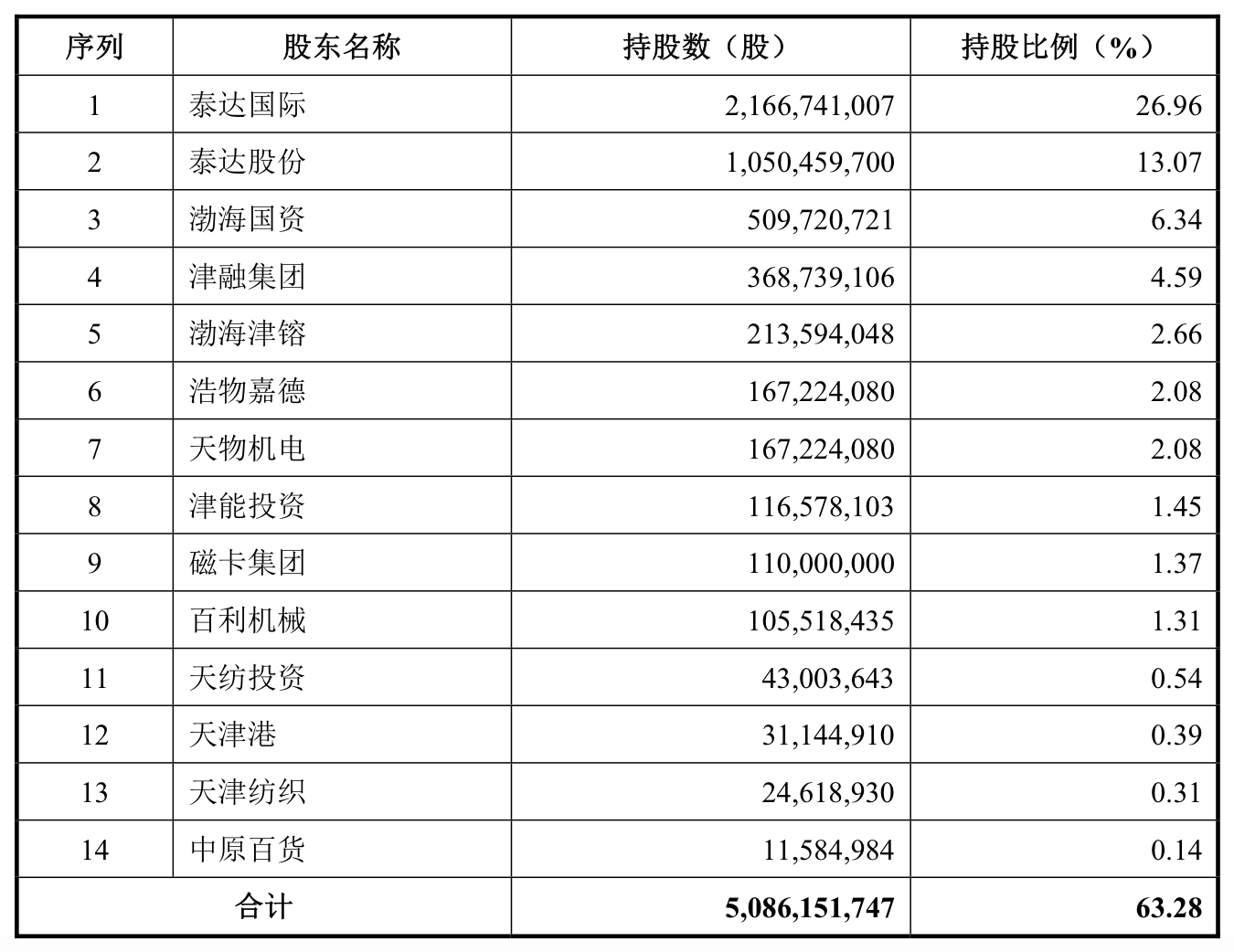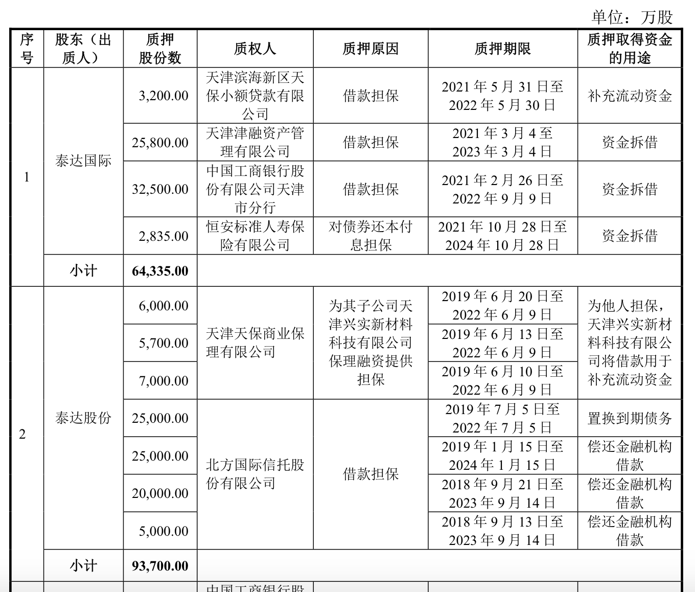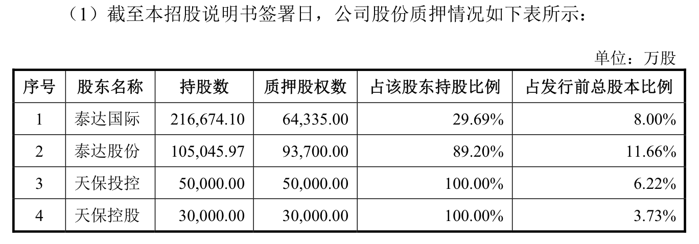 不僅如此,從說明書可見,包括泰達(dá)國際、泰達(dá)股份在內(nèi),共有13家股東質(zhì)押了30.78億股出去,占到總數(shù)的38.3%。其中,泰達(dá)國際、泰達(dá)股份、浩物嘉德、天物機(jī)電、天紡?fù)顿Y、天津紡織都系天津市國資委控制的企業(yè)。