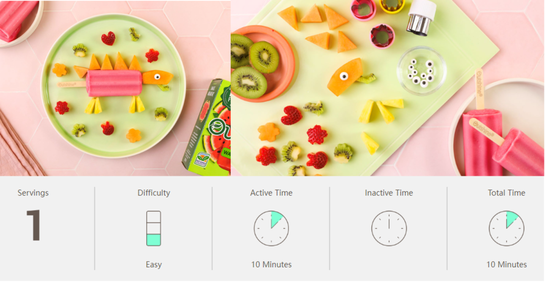 甚至是一些親子時刻,Outshine bar也能毫不突兀的融入其中,簡單的DIY制作成為假期陪伴孩子的小游戲。在Outshine官網(wǎng)上,展示了大量食譜,從拿鐵到適合全家的早餐碗,甚至是卡通動物果盤都會展示出詳細(xì)的制作原料及方法,包括分量、難度、所需時間。不僅如此,這些食譜覆蓋的年齡圈層和適用場景也很全面,融入到生活的方方面面,發(fā)掘更多的可能性。