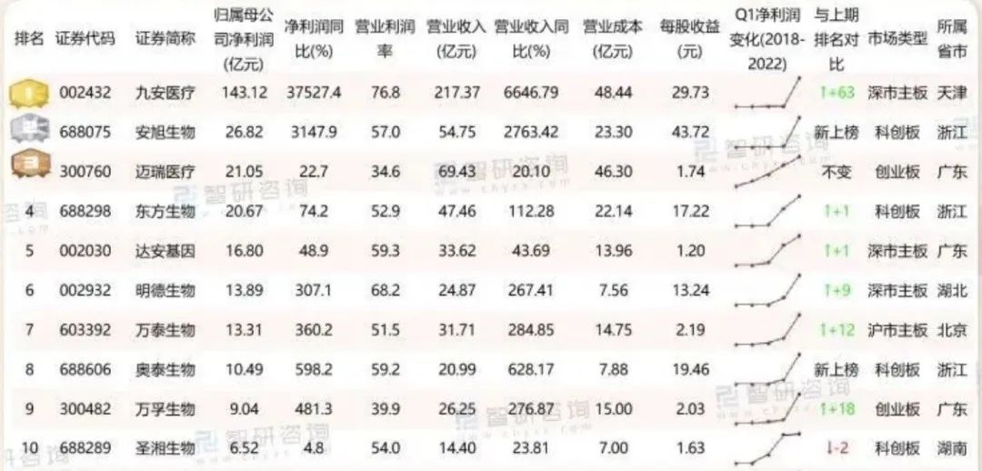 2022年Q1,A股最賺錢(qián)的醫(yī)療器械公司TOP 10,無(wú)一例外,全部都是IVD企業(yè);