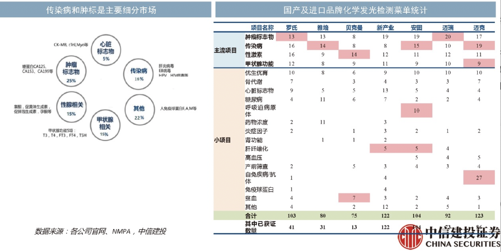 就像逐漸完成一幅巨大的拼圖,在相繼突破生化、血球等模塊后,化學(xué)發(fā)光將作為IVD國(guó)產(chǎn)替代的下一個(gè)目標(biāo),成為外企、國(guó)產(chǎn)同臺(tái)酣戰(zhàn)的主要戰(zhàn)場(chǎng)。