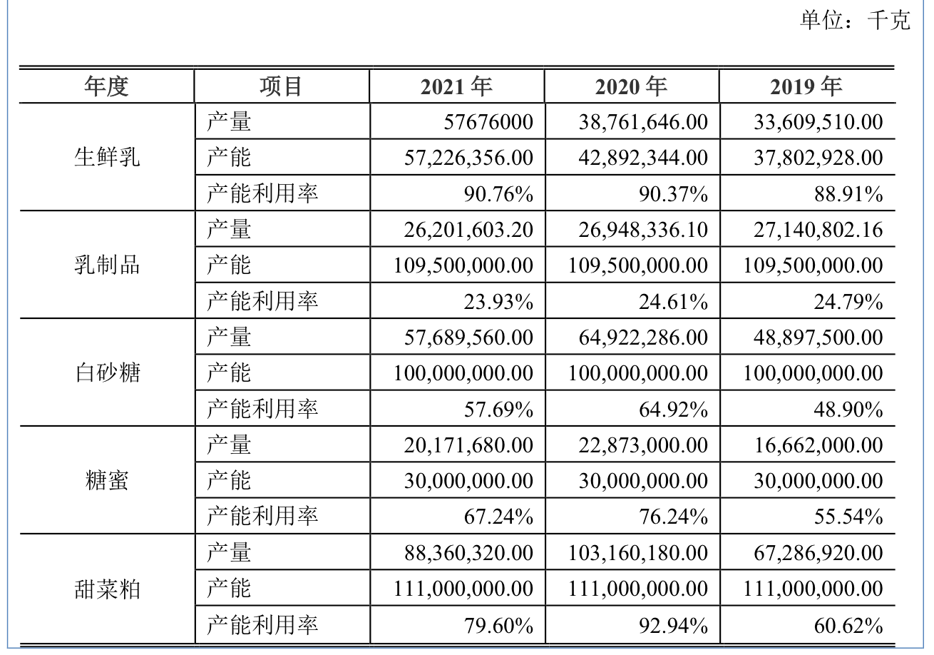 甜菜方面,根據(jù)騎士乳業(yè)的描述,外購甜菜和自產(chǎn)甜菜的定價方法:采購價=基準(zhǔn)價+運(yùn)費(fèi)+除土費(fèi)。其中2019年、2020年自產(chǎn)甜菜與外購甜菜基準(zhǔn)價格均為500元/噸,2021年自產(chǎn)甜菜基準(zhǔn)價為550元/噸,外購甜菜基準(zhǔn)價為500元/噸;此外報(bào)告期內(nèi)自產(chǎn)有機(jī)甜菜在基準(zhǔn)價基礎(chǔ)上溢價100元/噸。