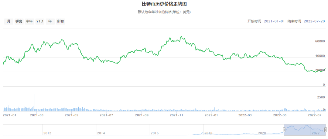 比特幣的價(jià)格起起伏伏,最高時(shí)漲到了6萬美元/枚以上,今年以來進(jìn)入下跌區(qū)間,現(xiàn)在已經(jīng)跌到只有2萬美元/枚。