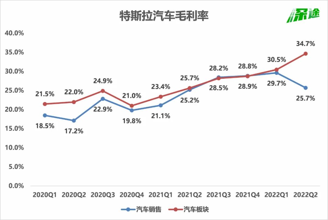 但是,今年二季度,這個(gè)數(shù)值又降到了25.7%,回到了一年前的水平。最后是依靠汽車租賃、二手車、車險(xiǎn)等這些非主營但是毛利更高的業(yè)務(wù),才讓特斯拉汽車板塊的毛利率,維持在了30%以上。但這不是一個(gè)好信號(hào)。