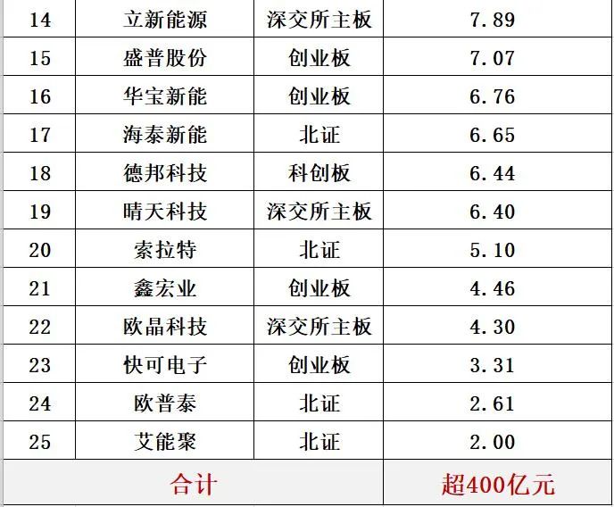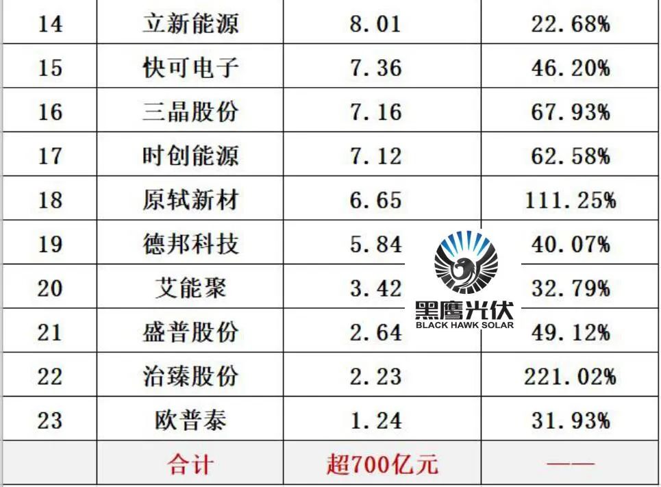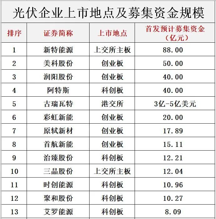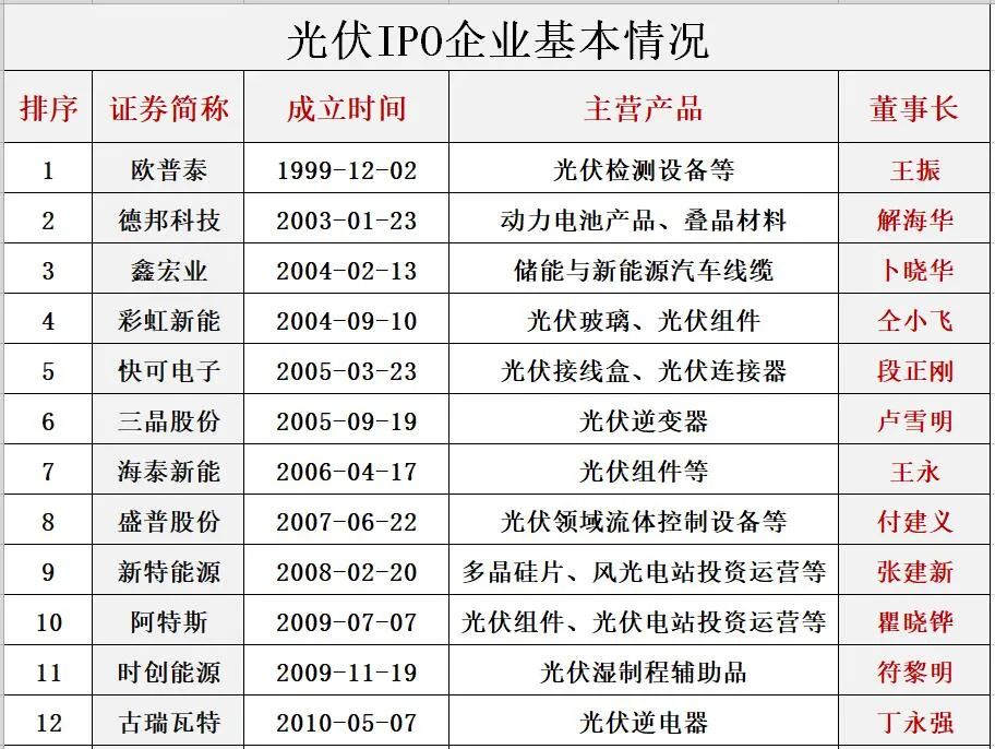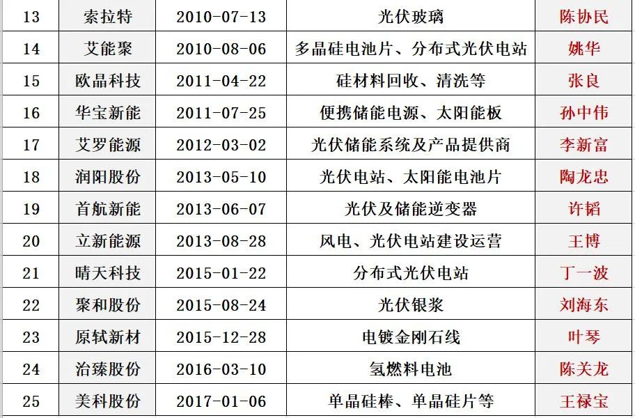 這25家正在闖關(guān)ipo的光伏企業(yè)是:新特能源、阿特斯、首航新能、三晶股份、海泰新能、潤(rùn)陽(yáng)股份、晴天科技、美科股份、歐普泰、德邦科技、鑫宏業(yè)、彩虹新能、快可電子、盛普股份、時(shí)創(chuàng)能源、古瑞瓦特、索拉特、艾能聚、歐晶科技、華寶新能、艾羅能源、立新能源、聚和股份、原軾新材、治臻股份。