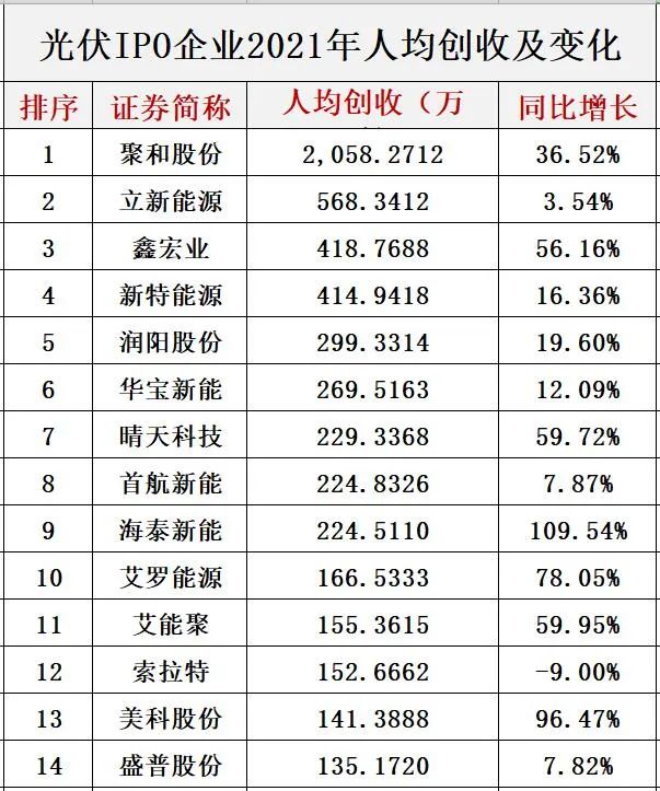 本期內(nèi)容,黑鷹光伏還統(tǒng)計(jì)了光伏IPO企業(yè)的營(yíng)收、凈利、毛利、研發(fā)投入、資本實(shí)力、員工規(guī)模、員工收入、員工創(chuàng)收能力等多個(gè)核心經(jīng)營(yíng)數(shù)據(jù),供讀者參考(特備注:阿特斯和歐晶科技都沒(méi)有披露2021年數(shù)據(jù),所以在營(yíng)收凈利等榜單里都沒(méi)有顯示)