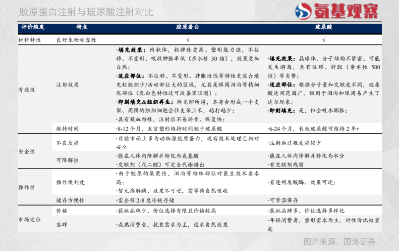 更重要的是,膠原蛋白競(jìng)爭(zhēng)格局優(yōu)于玻尿酸。