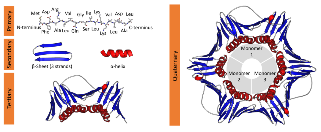 蛋白質的分子結構可劃分為四級,以描述其不同層級的特征: