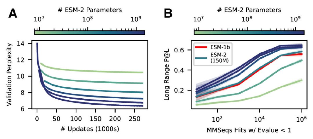 ▲ESM-2模型隨著參數量升高精度升高