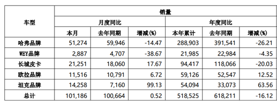 圖:長城汽車6月產(chǎn)銷公告 來源:上交所
