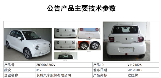 圖:歐拉R1(黑貓)注冊信息 來源:工信部
