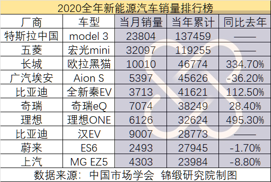 但隨著2020年特斯拉上海工廠投產(chǎn)出貨,整個新能源汽車行業(yè)開始逆勢反轉。2020年2月,特斯拉中國交付了3900輛model 3,當年銷量超13萬輛,位列新能源交付榜第一位。