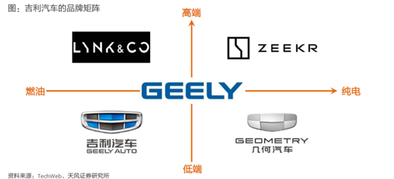 圖:吉利旗下品牌矩陣 來源:天風證券