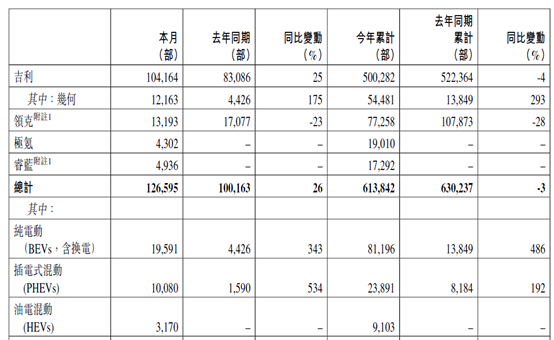 圖:吉利汽車6月銷量公報 來源:港交所