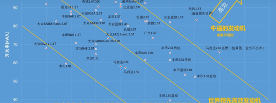 圖:世界發(fā)動機天梯圖 數(shù)據(jù)來源優(yōu)先順序為MTZ、SAE論文集,國內(nèi)技術論文集,各大公司技術報告,官方宣傳文件,非官方文件