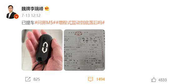 圖:魏牌CEO李瑞峰購買問界M5 來源:微博