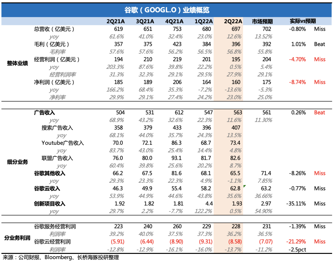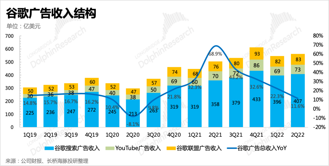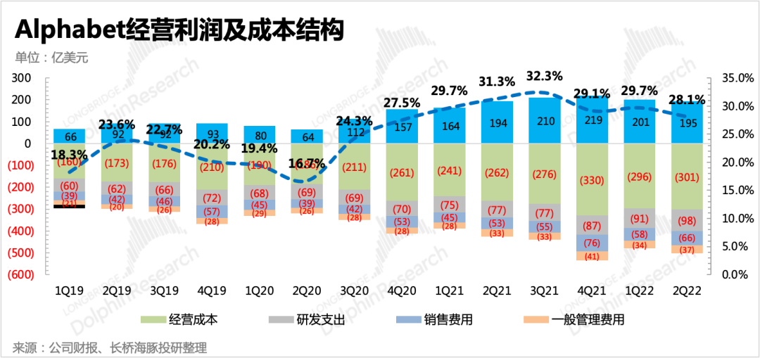 今天早晨(北京時(shí)間7月27日)美國(guó)廣告巨頭Google母公司Alphabet的二季度財(cái)報(bào)發(fā)布。總結(jié)來(lái)說(shuō),谷歌的這次財(cái)報(bào)以及市場(chǎng)反應(yīng),再次呈現(xiàn)了在悲觀預(yù)期下,“平平無(wú)奇”也可以是另一種“超預(yù)期”的奇妙現(xiàn)象。不過(guò)海豚君仍然要提醒,我們還是可以從一些指標(biāo)中察覺(jué)出當(dāng)下企業(yè)品牌方對(duì)未來(lái)經(jīng)濟(jì)需求低迷的預(yù)期,從而選擇去收縮營(yíng)銷預(yù)算的環(huán)境趨勢(shì)。