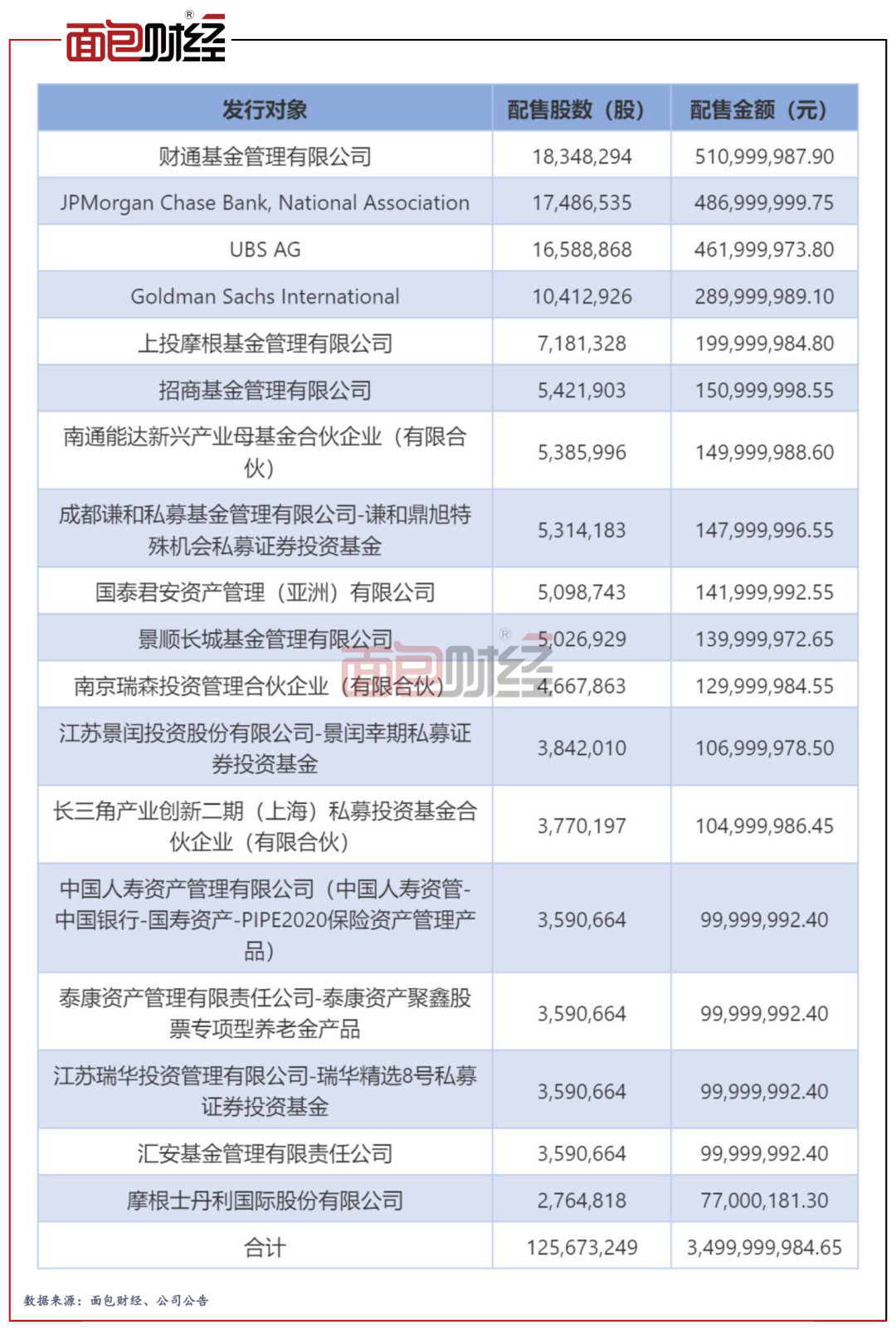 星源材質(zhì)近日完成定增,摩根大通、財(cái)通基金等18位機(jī)構(gòu)投資者最終獲配,募集資金總額35億元。