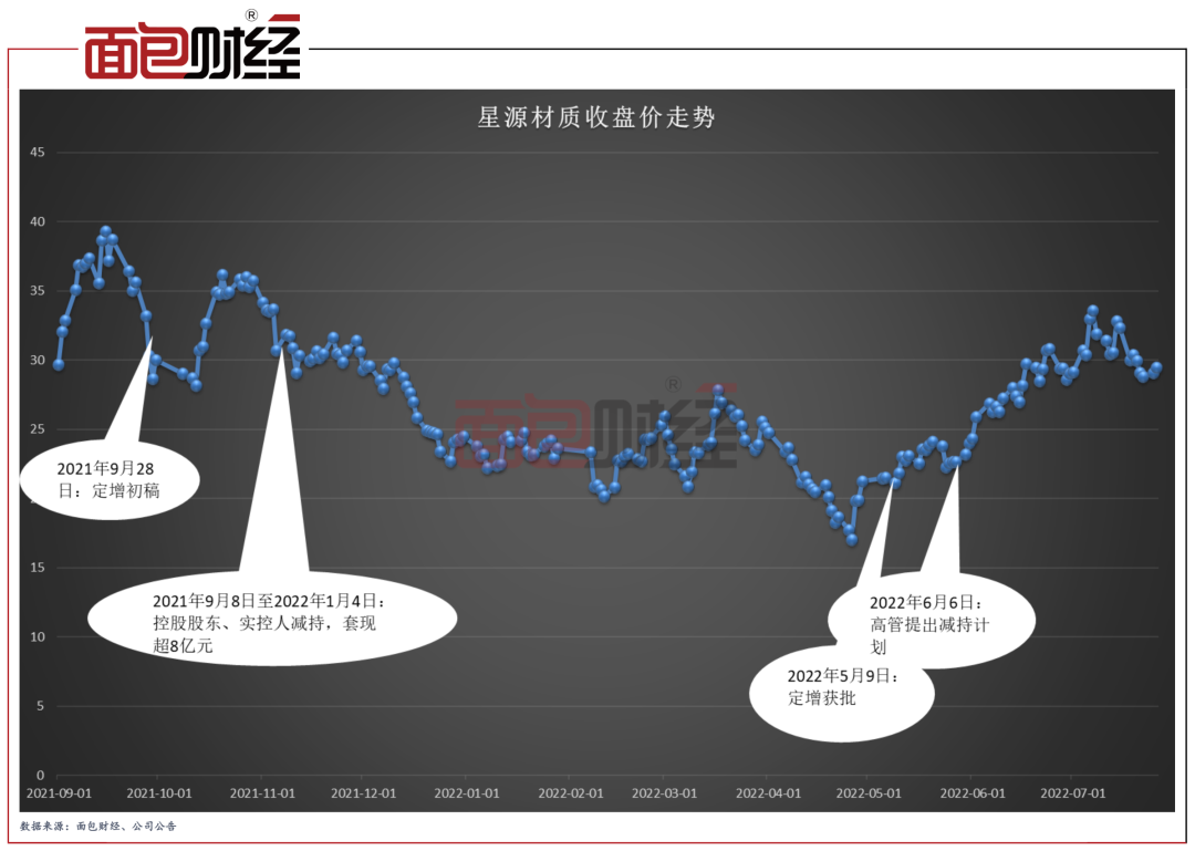 2021年9月至2022年年初,當(dāng)星源材質(zhì)處于股價(jià)高位時(shí),控股股東、實(shí)控人陳秀峰和陳良合計(jì)減持超1700萬股公司股票,共套現(xiàn)超8億元。2022年6月,公司高管又拋出減持計(jì)劃。