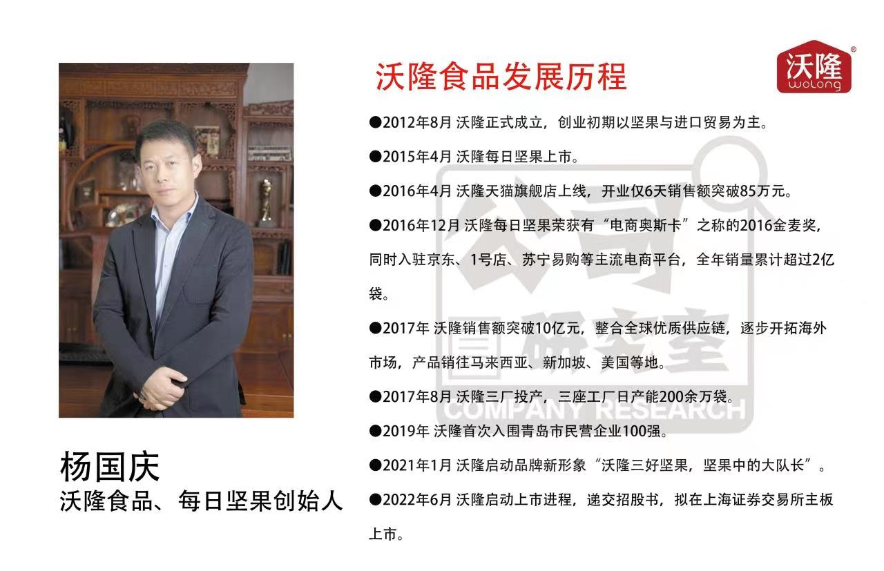 招股書(shū)稱(chēng),沃隆食品是行業(yè)領(lǐng)先的以堅(jiān)果相關(guān)產(chǎn)品為核心的休閑食品生產(chǎn)商,始終以“只做好堅(jiān)果”為理念,這其實(shí)就是楊國(guó)慶的堅(jiān)果大單品戰(zhàn)略。