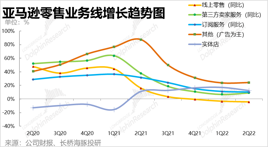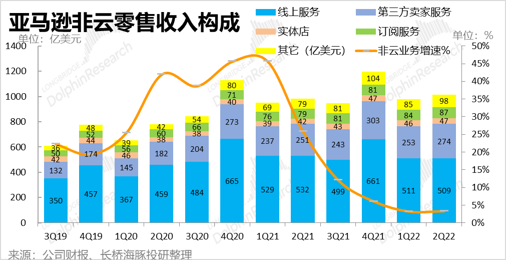剔除AWS不看,本季零售類業(yè)務(wù)營收同比增長3.3%(上季為3.1%),較上季竟有所反彈,打破了市場對零售業(yè)務(wù)可能進一步回落的擔憂。具體來看,超預(yù)期主要來自于兩點。