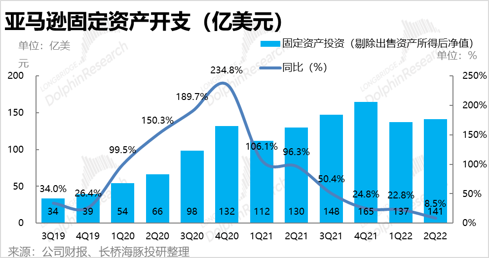 此外,公司本季固定資產(chǎn)投入為141億,同比增速由先前20%以上,大幅下降到本季的8.5%??梢妬嗰R遜總數(shù)開始放緩于營收增速錯配,且嚴重拖累公司利潤的資本投入節(jié)奏了。