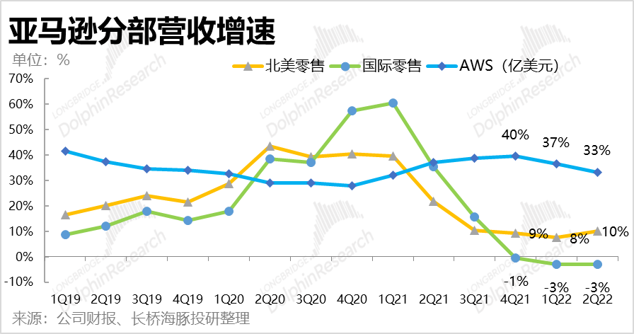 二是北美整體零售業(yè)務(wù)增速也開始反彈,本季營收增速接近10%,超過上季度的8%。盡管北美商品零售大盤增速在二季度仍在放緩,而亞馬遜的表現(xiàn)與比行業(yè)更具韌性。