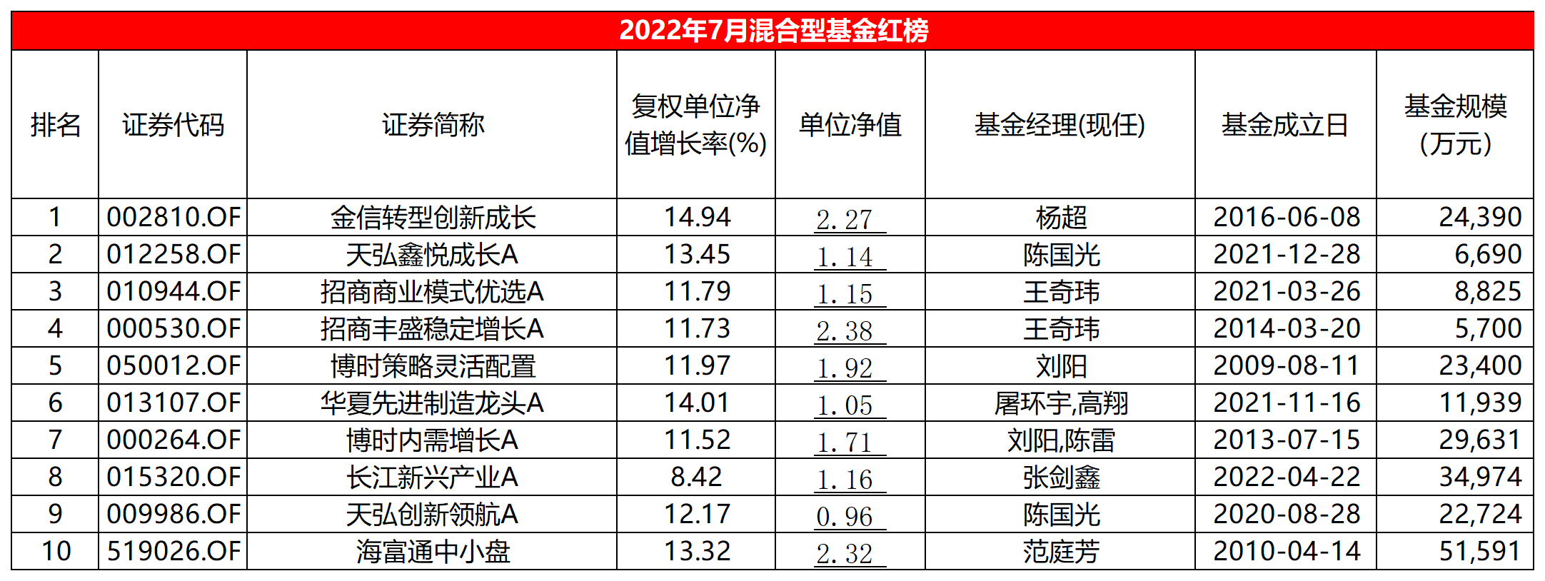 界面新聞綜合收益率、波動(dòng)率、擇時(shí)與選股等維度對(duì)混合型基金進(jìn)行了評(píng)估,同時(shí)對(duì)上榜基金進(jìn)一步篩選,剔除資產(chǎn)規(guī)模合計(jì)低于五千萬(wàn),以及成立時(shí)間不超過(guò)一個(gè)月的基金,并排除非投資收益原因造成的凈值上漲,整理形成七月份紅黑榜。