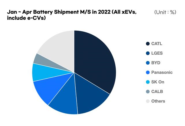2022年一季度數(shù)據(jù)顯示,寧德時(shí)代、LG新能源、比亞迪、松下四家就占到了全球動力電池市場的70%,頭部效應(yīng)明顯。