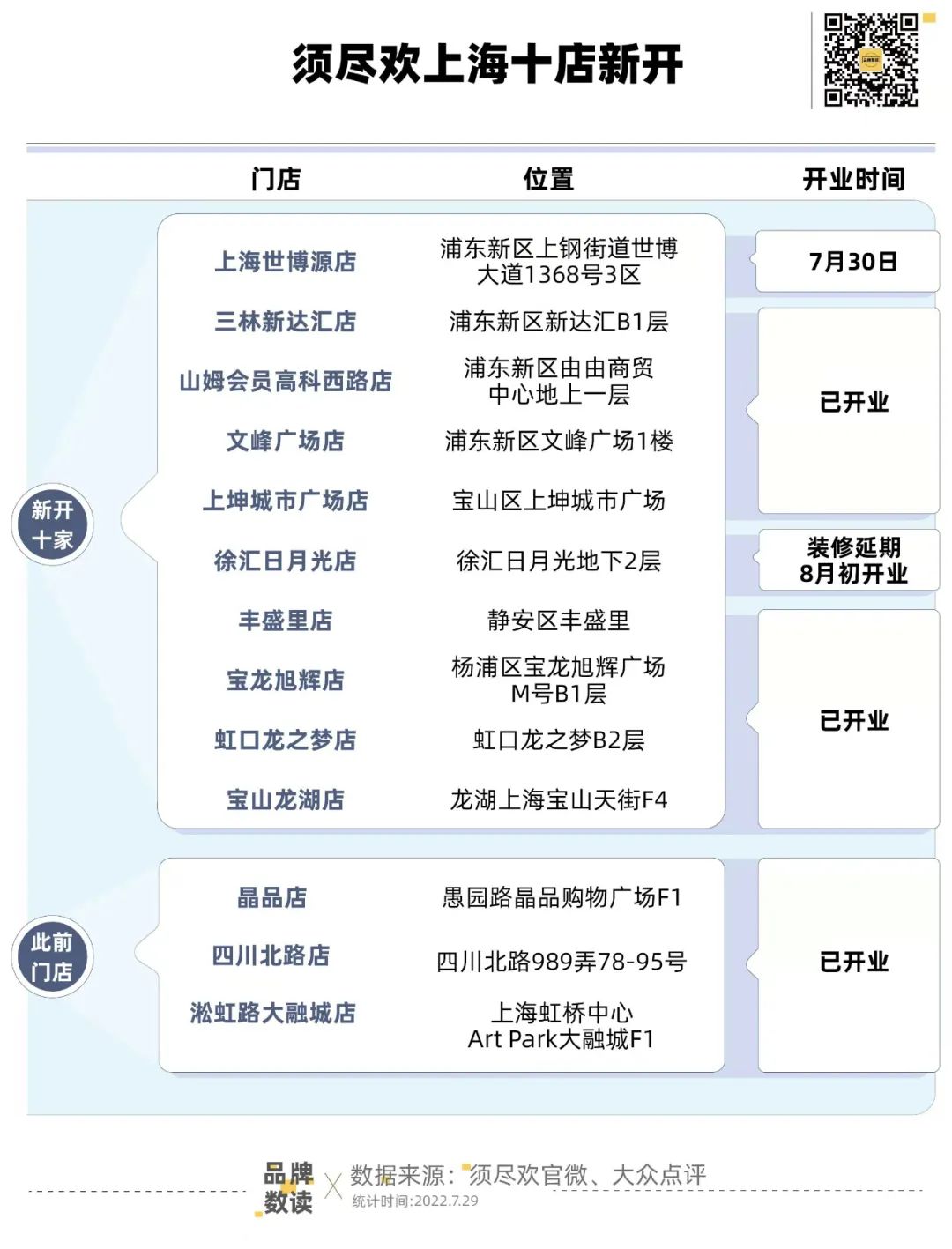 注:“此前門店”僅指上海此前已開業(yè)、現(xiàn)在仍舊營業(yè)的門店,根據(jù)大眾點(diǎn)評,須盡歡此前其他城市的門店僅剩成都新世界店?duì)I業(yè)