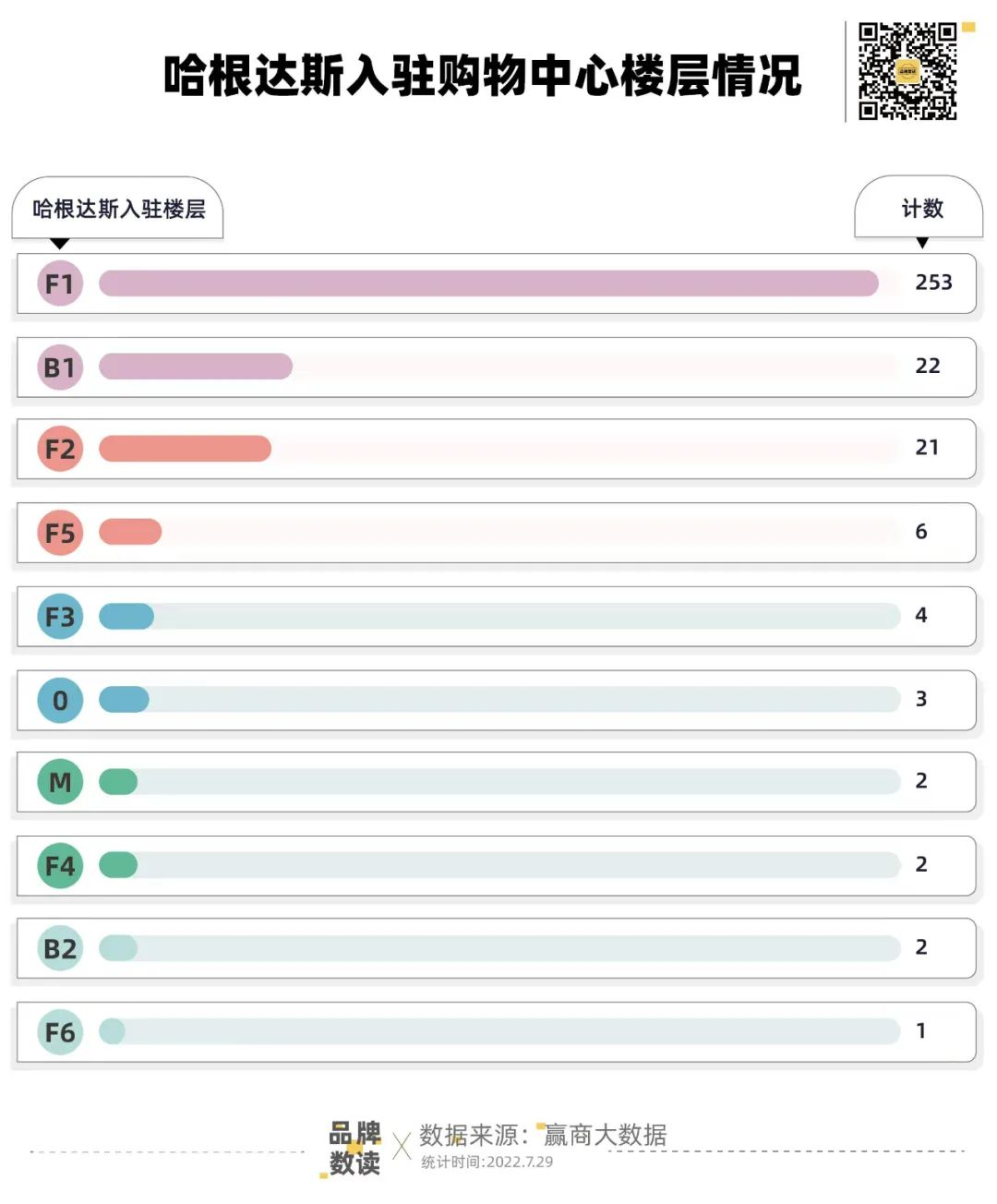 在購物中心的品牌邏輯中,1樓是品牌們爭相進(jìn)駐的樓層,它某種程度上代表了品牌的“身價(jià)”。而1層一直是哈根達(dá)斯的首選。根據(jù)贏商大數(shù)據(jù),在哈根達(dá)斯310家購物中心中,253家位于1層,占比達(dá)80%。