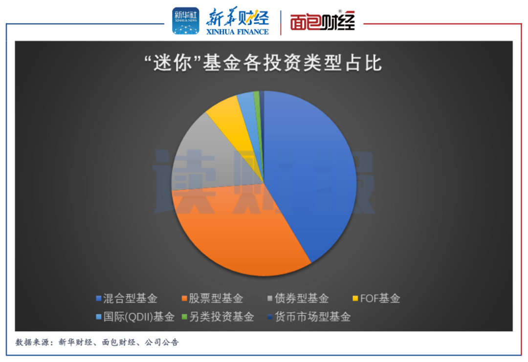 按照投資類型劃分,混合型基金、股票型基金的“迷你”基金數(shù)量占比最大,分別達(dá)到41.42%和32.37%。其次為債券型基金,數(shù)量占比為15.31%。其余類型的基金數(shù)量占比均未達(dá)到10%。