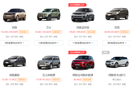 在產(chǎn)品系列上,路虎與BBA等不同,類型簡潔明了,主要分為攬勝、發(fā)現(xiàn)、衛(wèi)生和神行者四個系列,價格從三四十萬到200多萬不等,全部都是SUV車型。