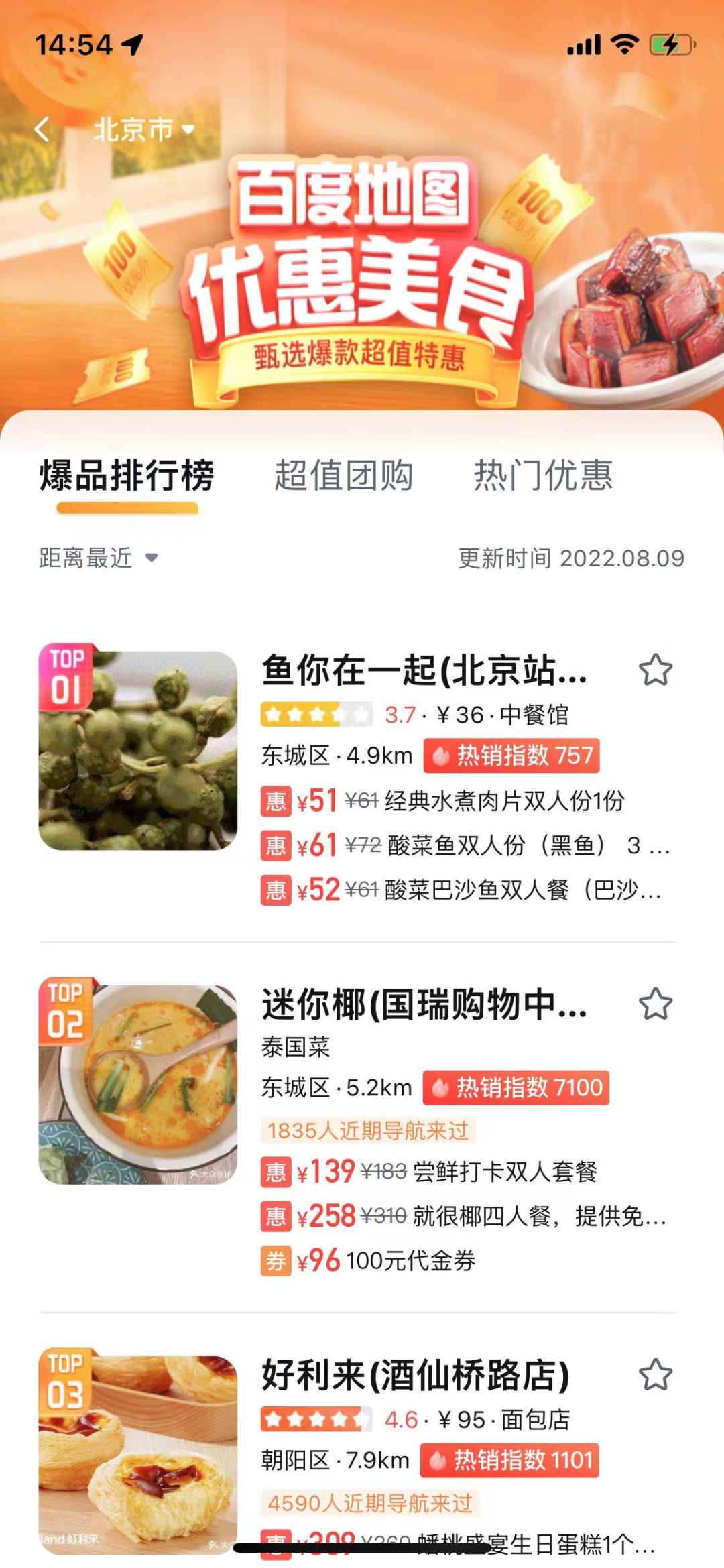 不過,雪豹財經(jīng)社在體驗后發(fā)現(xiàn),百度地圖“美食團(tuán)購”功能基于LBS顯示周邊的餐飲門店,頁面頂部劃分了優(yōu)惠餐廳、上榜餐廳、高分餐廳、附近1KM等欄目。頁面中部的地區(qū)熱門優(yōu)惠榜之下,又劃分為爆品排行榜、超值團(tuán)購、熱門優(yōu)惠等。在爆品排行榜中,排名前十的商家既有評分4.8的餐廳,也有評分3.7的餐廳。
