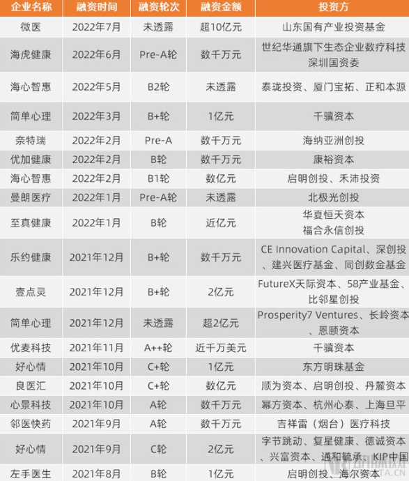 此外,也有蓮藕健康、方寸醫(yī)生這樣具備一定服務體量或聚焦數(shù)字療法的公司正在進行融資。