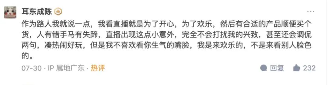 贊賞她的人說她是“性格直爽”“講究原則、決不妥協(xié)”,不喜歡她的人認(rèn)為董明珠“兇、發(fā)火、硬懟、手撕”。就比如直播間憤怒離場事件,有人支持董明珠,“讓老板在這里等?讓別人怎么想他們的產(chǎn)品”,有人稱“窒息感很強(qiáng)了”,一位@耳東成陳的網(wǎng)友表示,“我看直播就是為了開心,為了歡樂,直播出現(xiàn)這點(diǎn)小意外,完全不會(huì)打擾我的興致,但是我不喜歡看你生氣的嘴臉,我是來歡樂的,不是來看別人臉色的?!?/p>