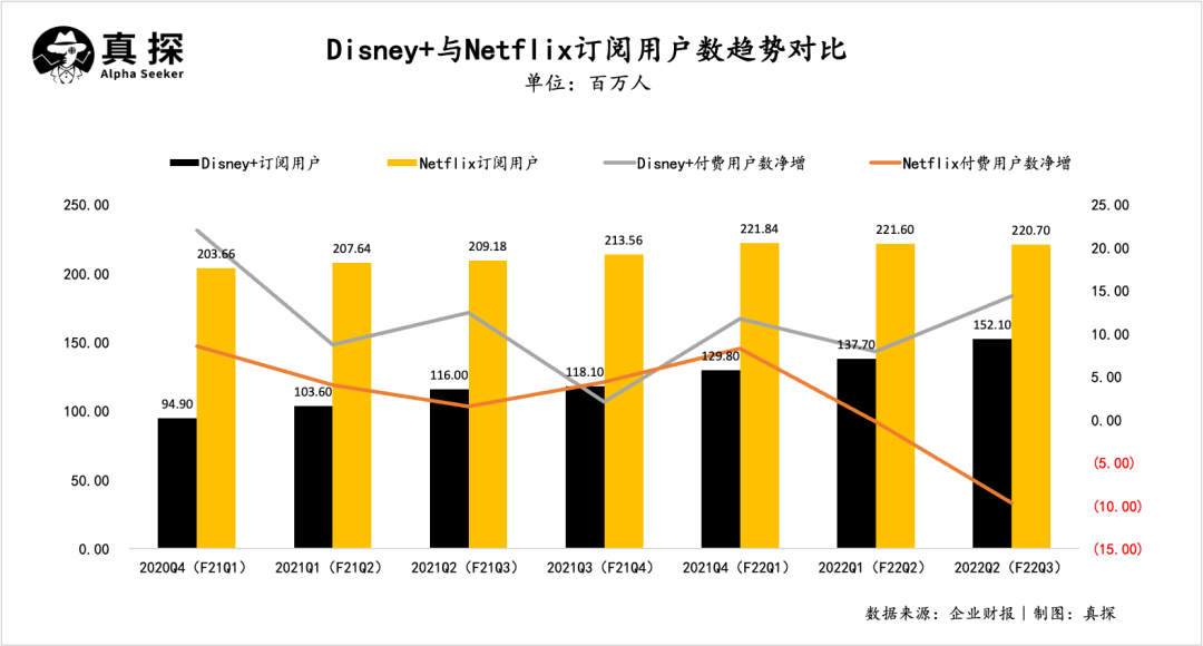 得益于Disney+1440萬的新增訂閱用戶數(shù),迪士尼流媒體平臺訂閱數(shù)用戶總計2.211億,超過Netflix的2.207億。同時,迪士尼趁勢宣布,將從今年12月起提高Disney+的訂閱費用。
