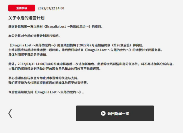 最鮮明的例子是任天堂,旗下手游《失落的龍約》在今年7月更新劇情篇章之后,就停止運營并擇期關(guān)服,這也被業(yè)內(nèi)視為任天堂時隔六年再次放棄手游業(yè)務(wù)的信號。