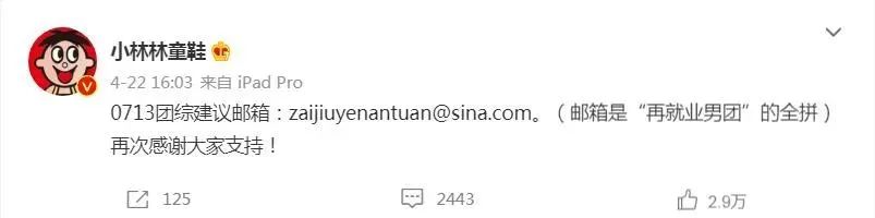 自此之后,大千影業(yè)CEO趙林林仿佛尋覓到了窮綜逆襲的武林秘笈,做出了幾番顛覆行業(yè)認(rèn)知的項目推進(jìn)動作。以微博“小林林童鞋“為陣地,趙林林把《快樂再出發(fā)》初立項、去長沙找平臺方洽談、招攬贊助金主、為團(tuán)綜在線征名等消息“實時”與網(wǎng)友們同步,成功促成節(jié)目未開播就在輿論場制造了好幾輪的熱搜討論。