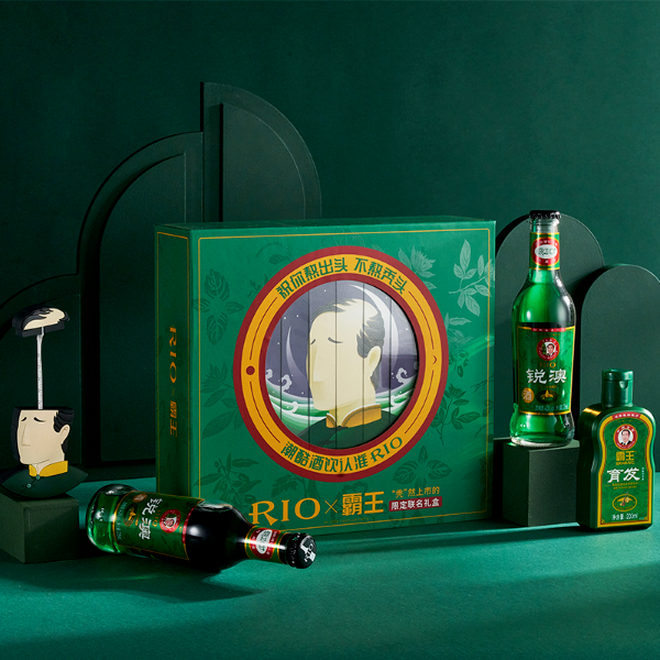 RIO雞尾酒于2021年12月與霸王洗發(fā)水跨界合作,推出新品“生姜風(fēng)味雞尾酒”。這款新品由純凈的伏特加與檸檬濃縮汁混合制成,搭配鮮嫩的小黃姜,入喉溫暖但不辛辣。而包裝則沿用了霸王洗發(fā)水的標(biāo)志性風(fēng)格與墨綠色的主色調(diào),在熟悉中添加新意,令人眼前一亮。