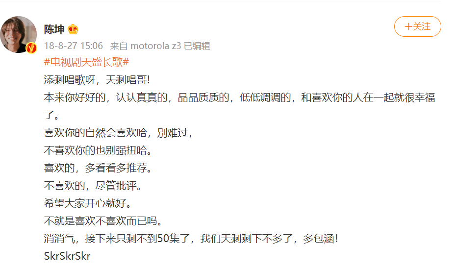 今天,是《天盛長(zhǎng)歌》播出四周年,也是陳坤變成“撲坤”的第四年。