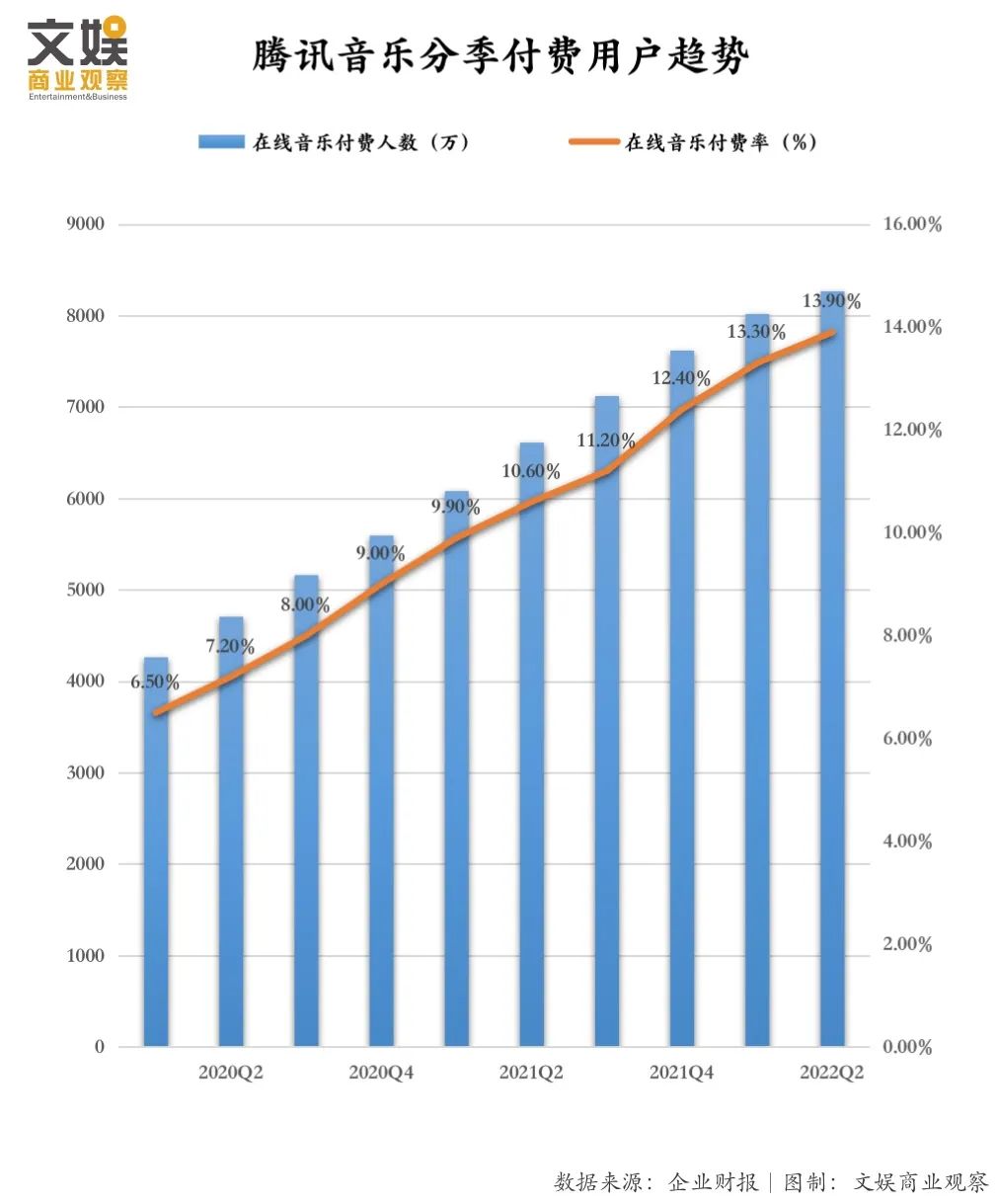 其一,在在線音樂用戶付費率上,騰訊音樂持續(xù)處于下風(fēng)。