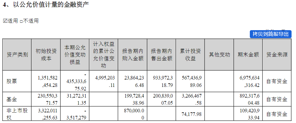 具體來看,溫氏股份利用自有資金持有的股票價值在報告期內減少了4.35億元。