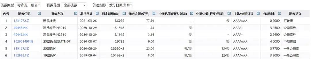 據同花順iFinD統(tǒng)計,截至目前,溫氏股份總計發(fā)行了22只債券,累計發(fā)行總額達264.88億元。目前仍在發(fā)行期限內的有6只,存量規(guī)模為149.32億元。