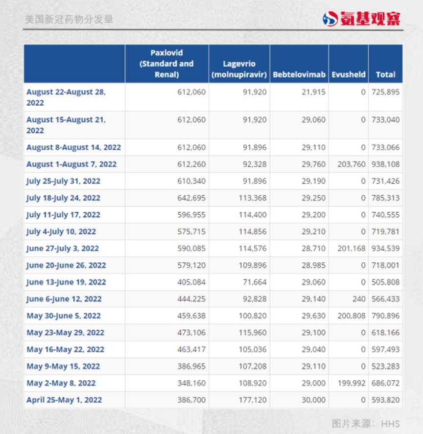 在6月13日至6月19日這一周,Paxlovid銷量為40萬個療程。而到了8月22日至8月28日這一周,銷量已增長到61萬個療程,增長了52.5%。