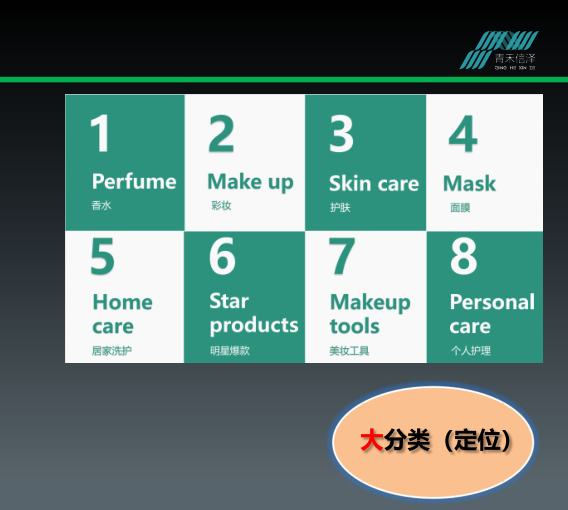 具體來(lái)看,所謂大分類(lèi),就是品類(lèi)結(jié)構(gòu),常見(jiàn)分類(lèi)包括護(hù)膚、彩妝、香水、面膜、洗護(hù)等等。一家化妝品店的品類(lèi)大類(lèi)的組成,它到底是賣(mài)香水、護(hù)膚品、彩妝,還是賣(mài)日化洗護(hù),決定了一家店鋪的定位是否清晰。