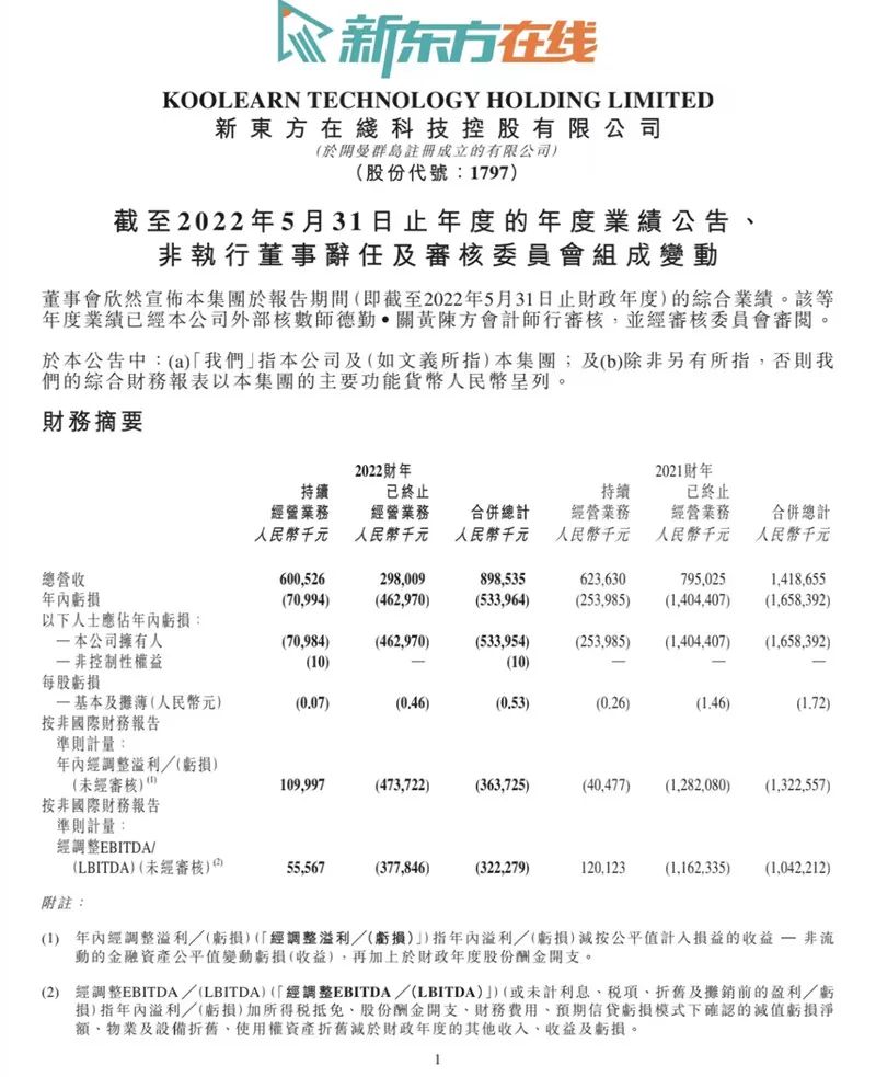 根據(jù)8月26日晚,新東方在線公布的截至2022年5月31日的財(cái)報(bào)顯示,2022年新東方在線東方甄選的直播電商業(yè)務(wù)總營(yíng)收為2460萬(wàn),毛利為930萬(wàn),毛利率為37.8%??傮w來(lái)看,新東方在線2022財(cái)年持續(xù)經(jīng)營(yíng)的年內(nèi)虧損同比降低了72%。