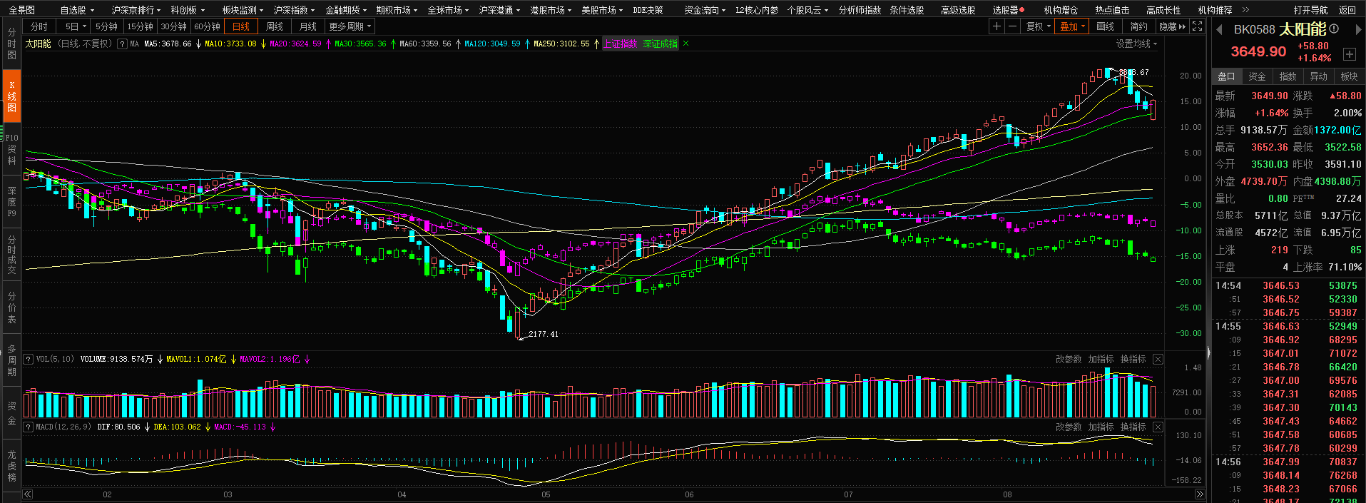8月29日,光伏板塊異動(dòng)走強(qiáng),拓日新能(002218.SZ)、寶馨科技(002514.SZ)、日出東方(603366.SH)、億晶光電(600537.SH)等個(gè)股漲停,晶科能源(688223.SH)、海泰新能(835985.BJ)、禾望電氣(603063.SH)漲超9%,晶澳科技(002459.SZ)、天合光能(688599.SH)等多股漲超4%。